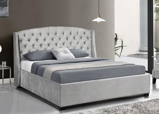 Ciemnoszare aksamitne skrzydło zagłówek Queen Tapicerowana nowoczesna rama łóżka typu king-size