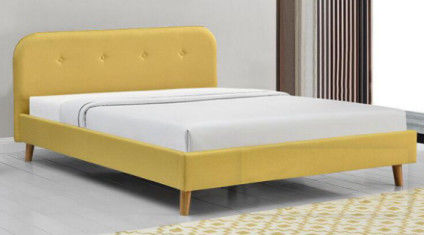 Słoneczna żółta rama łóżka z tkaniny lnianej z certyfikatem CE zagłówkiem