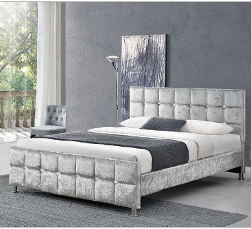 Zgnieciona tkanina aksamitna Kryształowe guziki Tania rama łóżka typu king size w stylu europejskim