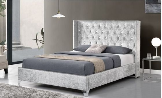To łóżko wygląda bardzo wysoko i elegancko, z aksamitną tkaniną na powierzchni i krystalicznymi guzikami. Jest błyszczące i piękne. Jest naprawdę wspaniałe. Projekt skrzydeł głowicy łóżka dodaje smaku do tego łóżka!